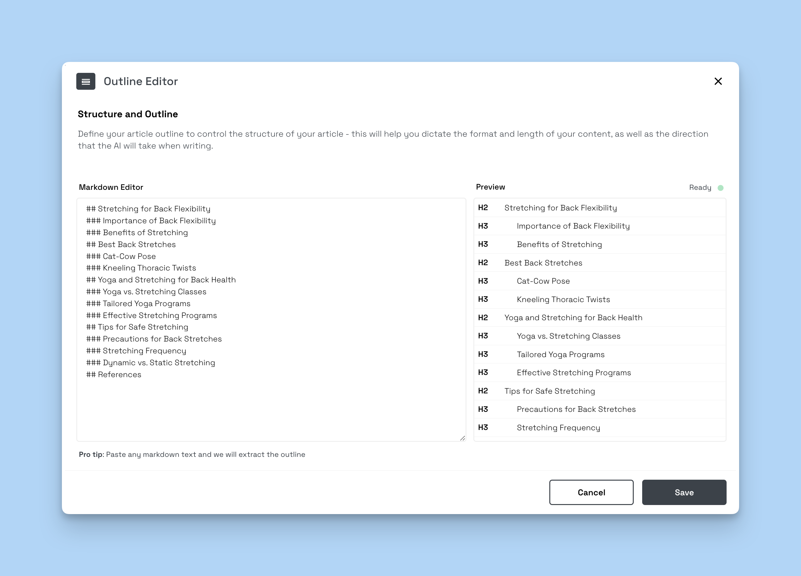 Note: Pro tip: Pasting any markdown text, including a whole article - will extract the outline π
