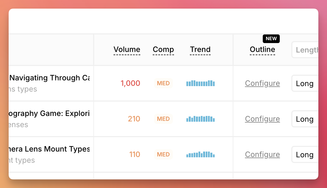 Historical trend shows you the keyword volume over the last 12 months. This helps you identify seasonal patterns or growing/declining interest in a topic.
