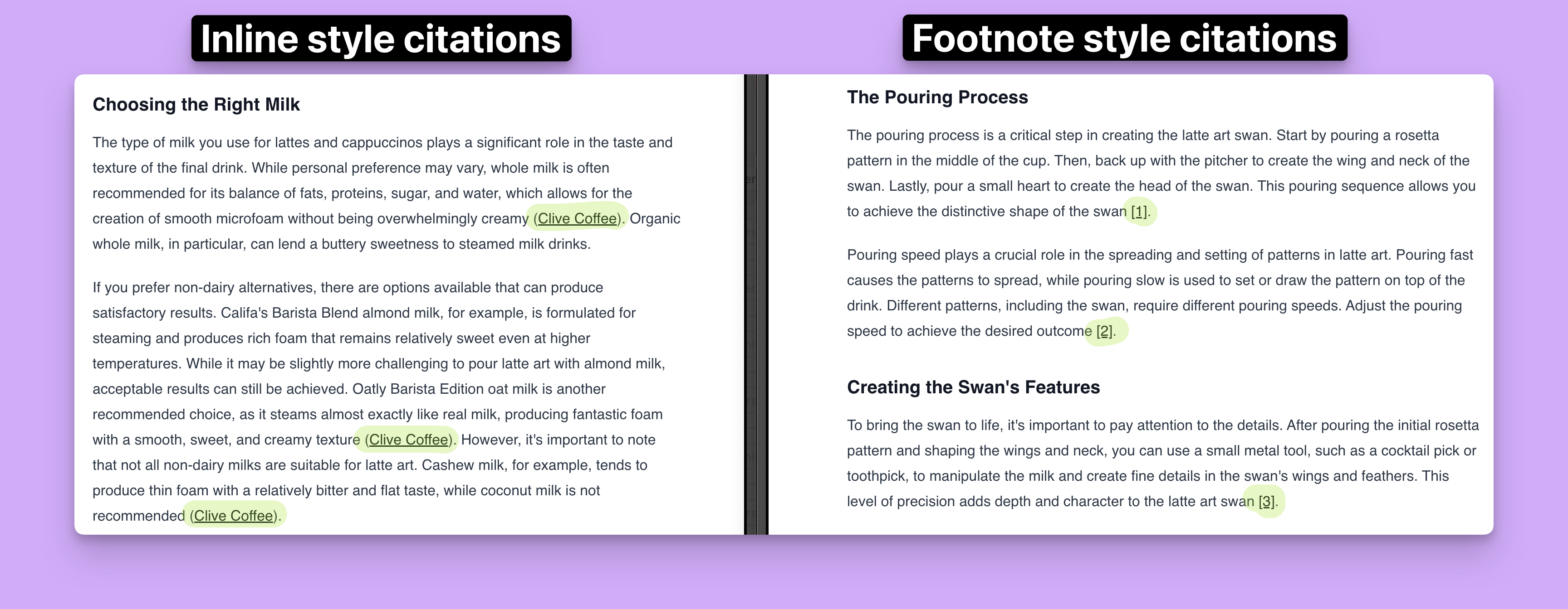Note: We recommend you use either Inline style with Standard density, or Footnote style with High density