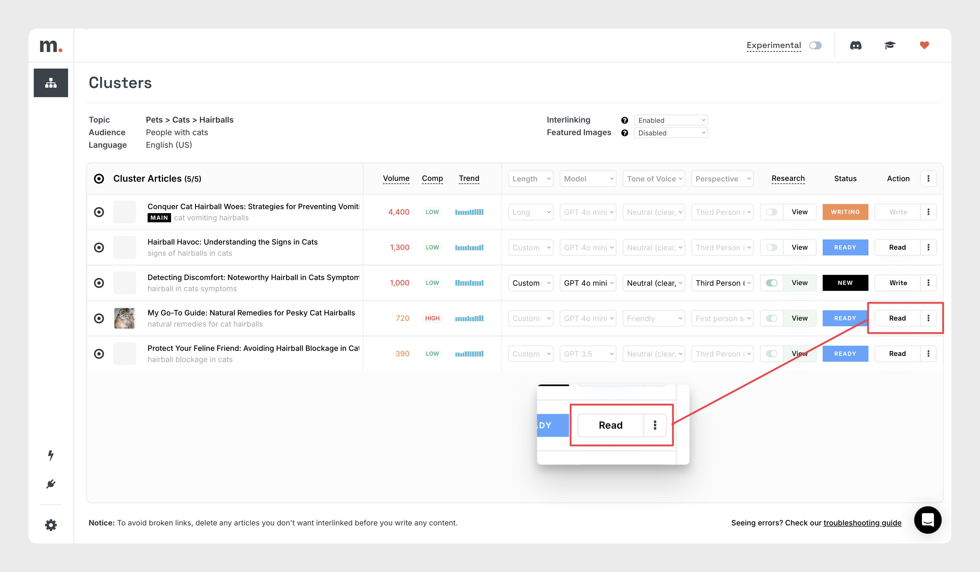 - You are working on a cluster called "latte art animals" with 3 articles: