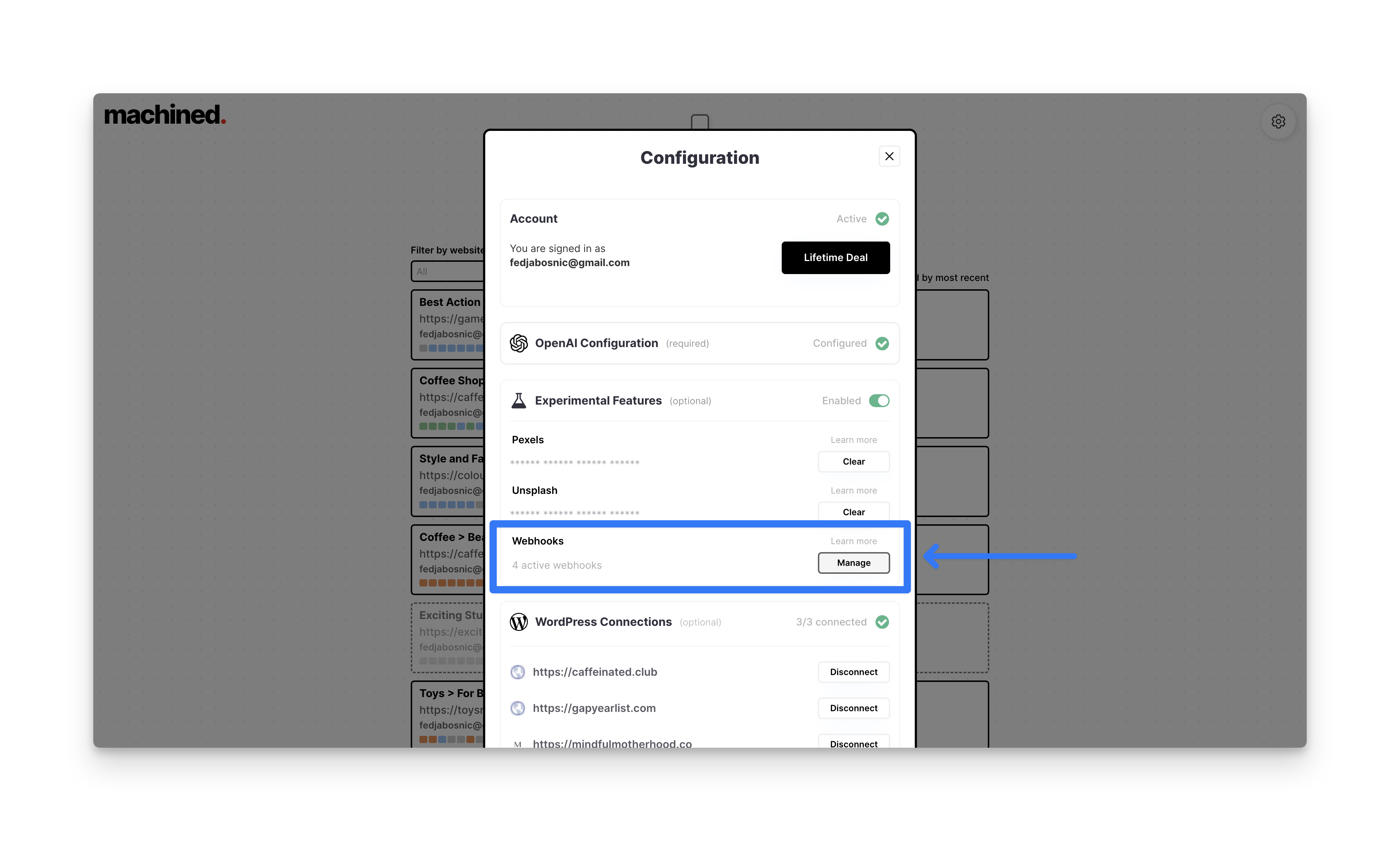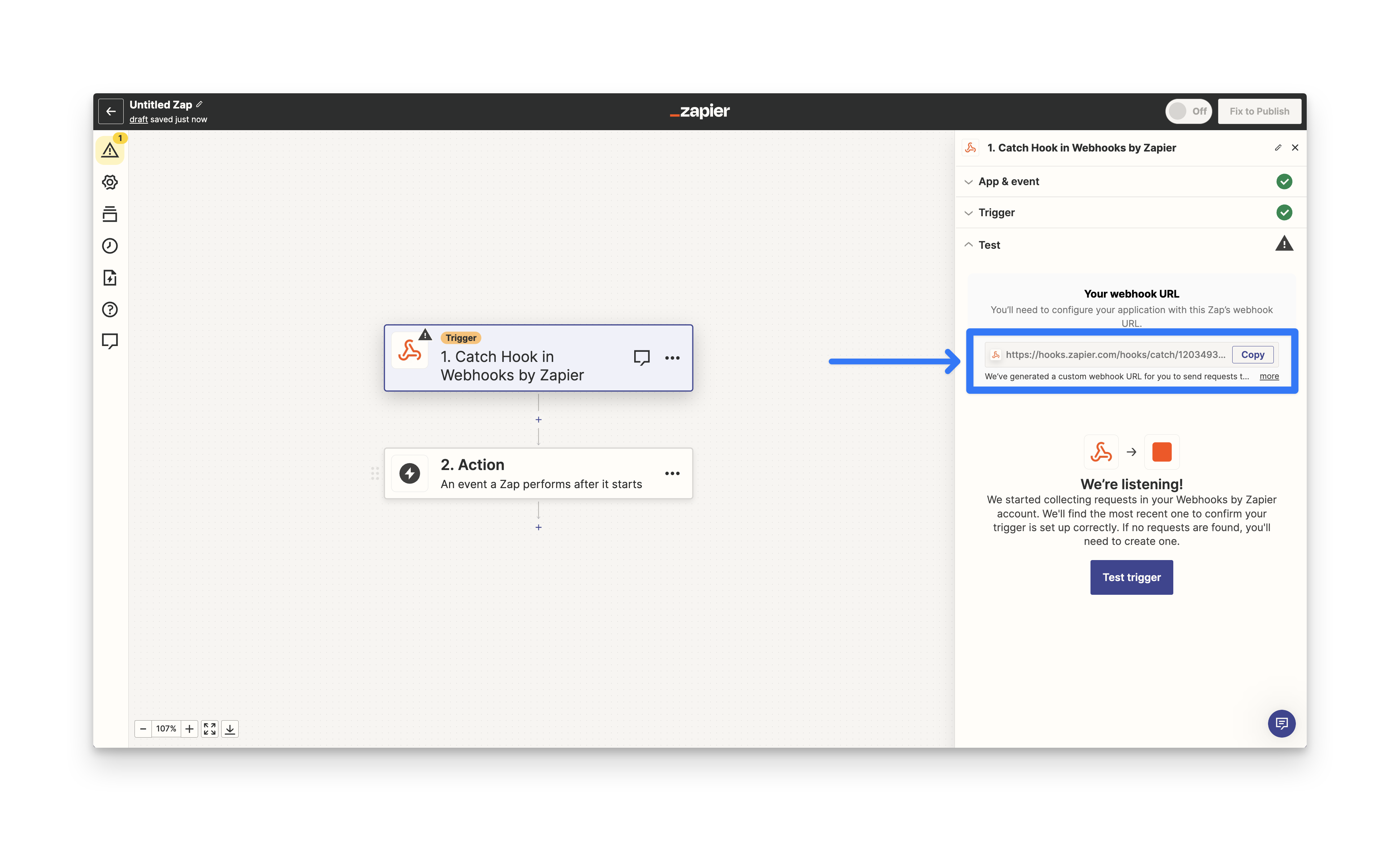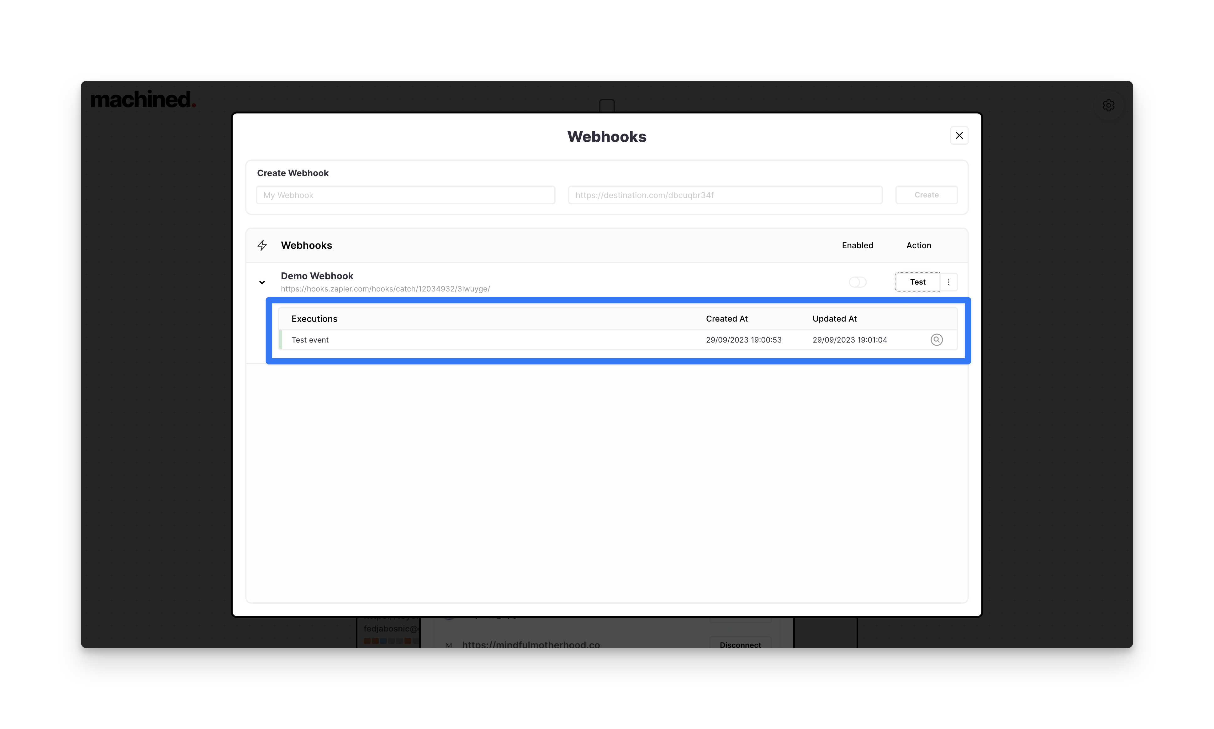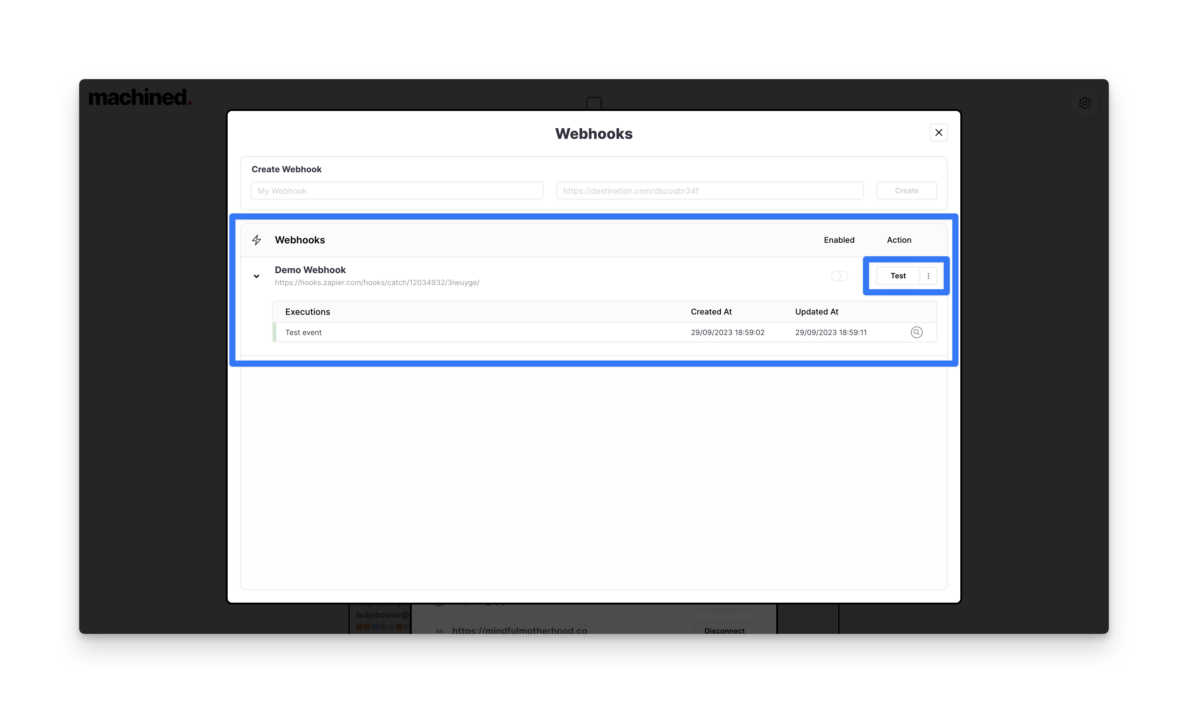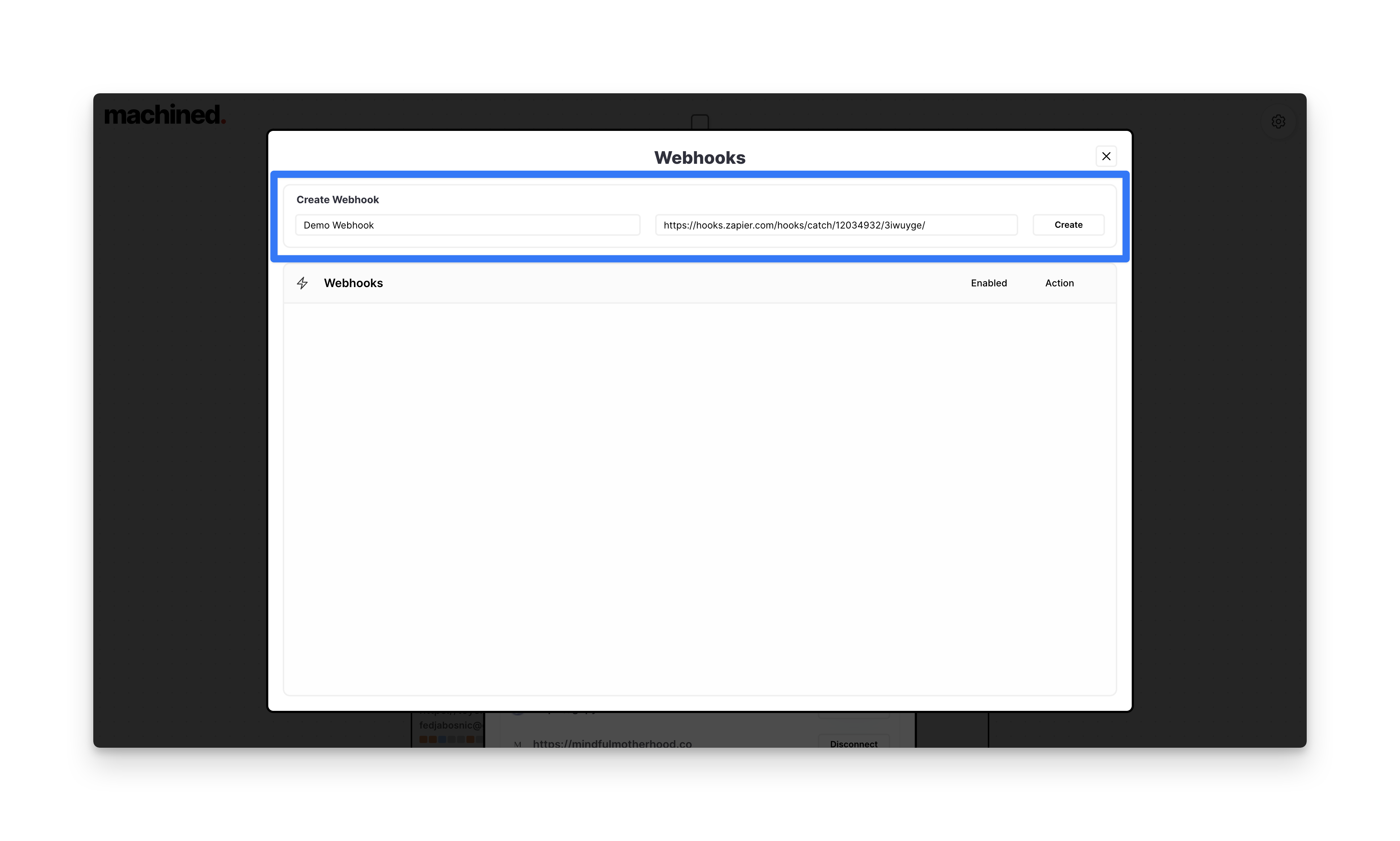 - Copy the Webhook URL generated by Zapier, we will paste this into Machined.
